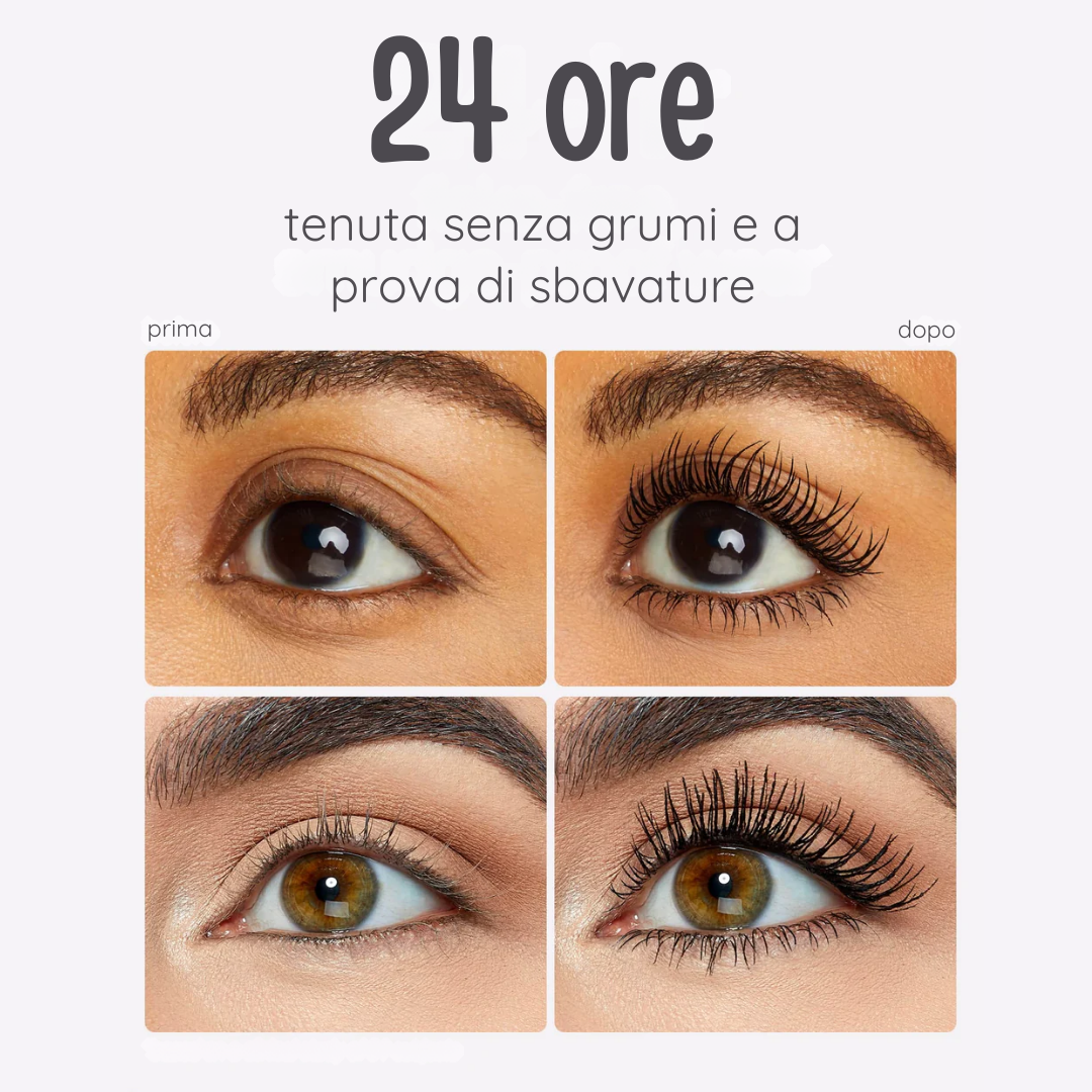 Quante volte il mascara ha rovinato il tuo make-up? Sbavature dopo poche ore, grumi fastidiosi che appesantiscono le ciglia, o la lotta serale con struccanti aggressivi che causano rossori e caduta delle ciglia. Con HelveLash™, questi problemi appartengono al passato. La sua formula innovativa crea un film che blocca le sbavature, mantiene il mascara perfetto per tutto il giorno e si rimuove in pochi secondi con sola acqua tiepida. Risultato? Un trucco occhi che resiste a ogni sfida quotidiana, ma che rispetta la salute e la bellezza delle tue ciglia.