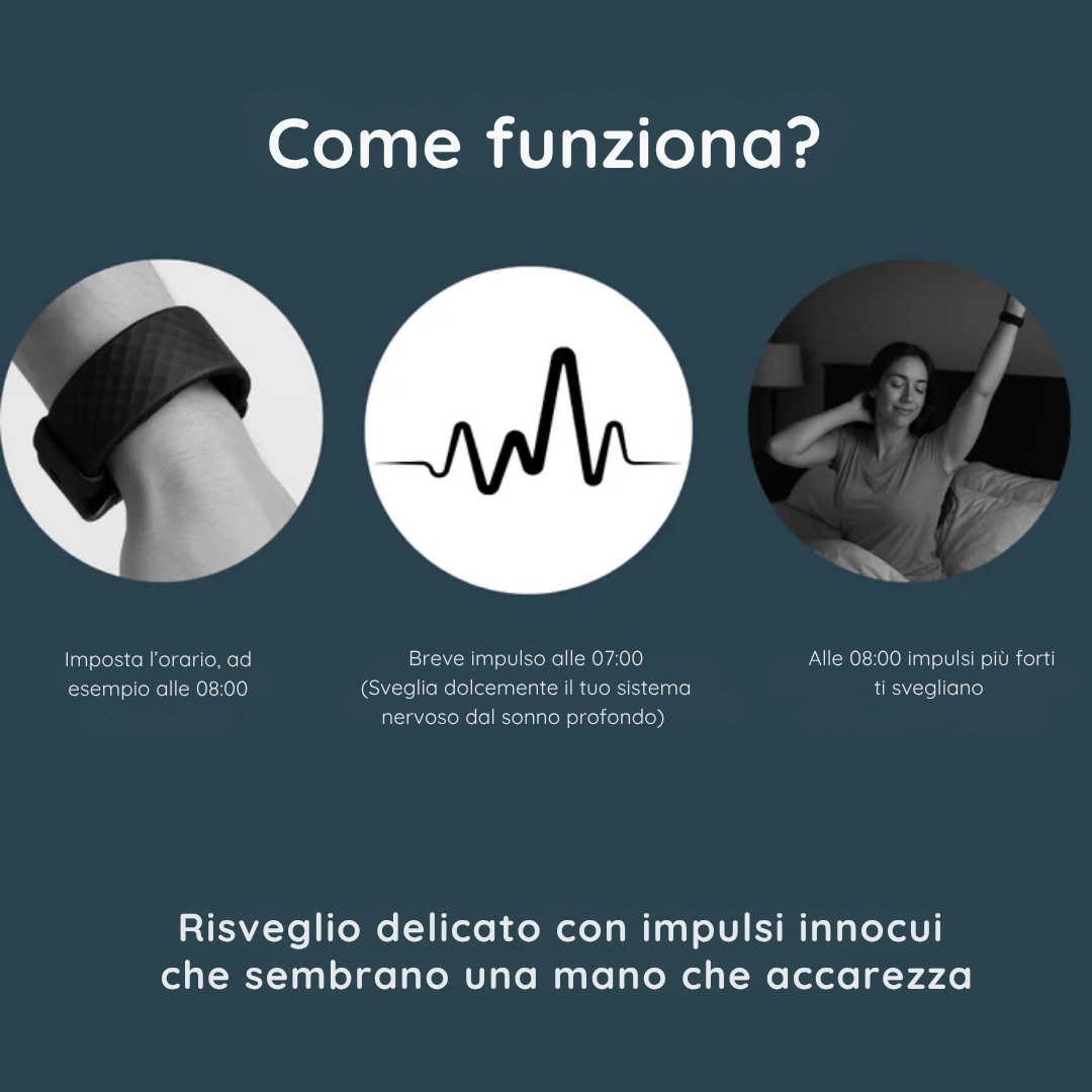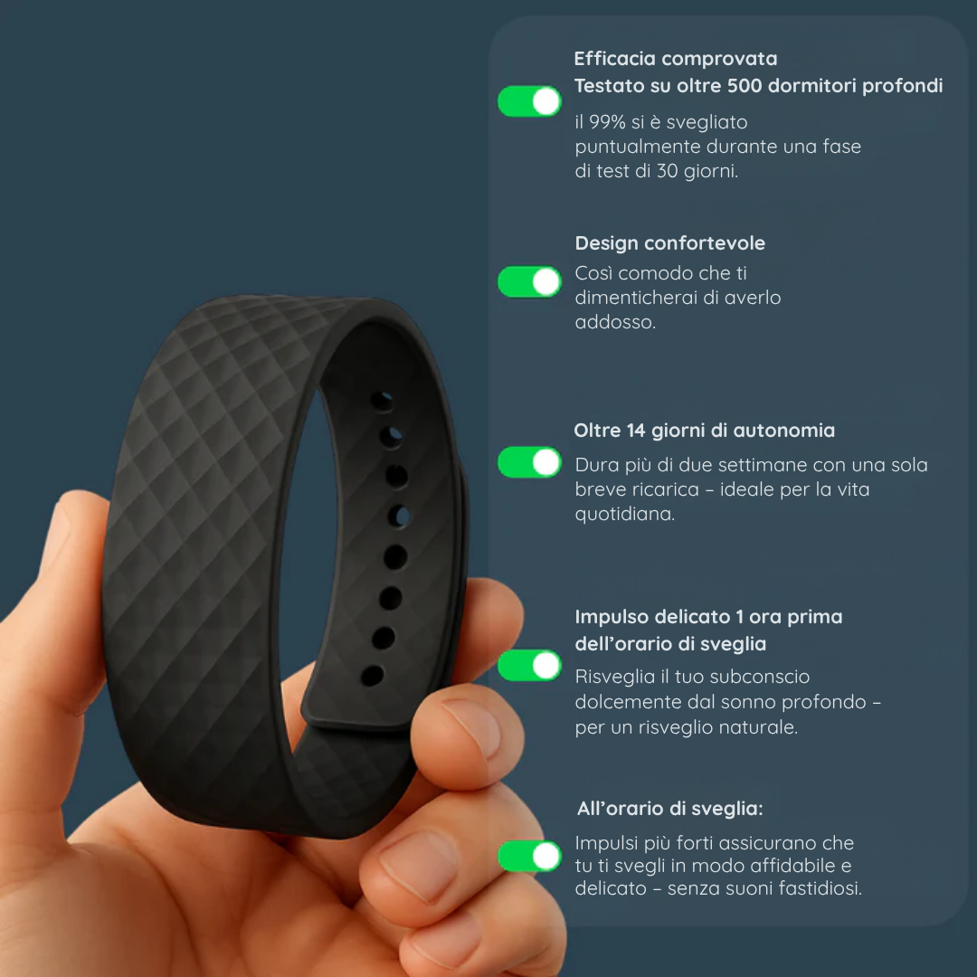 È leggerissimo e non dà fastidio al polso. La batteria dura tantissimo (oltre una settimana) e si ricarica in un attimo. Da quando uso HelveSleep™ ho più energia e inizio la giornata con il sorriso.