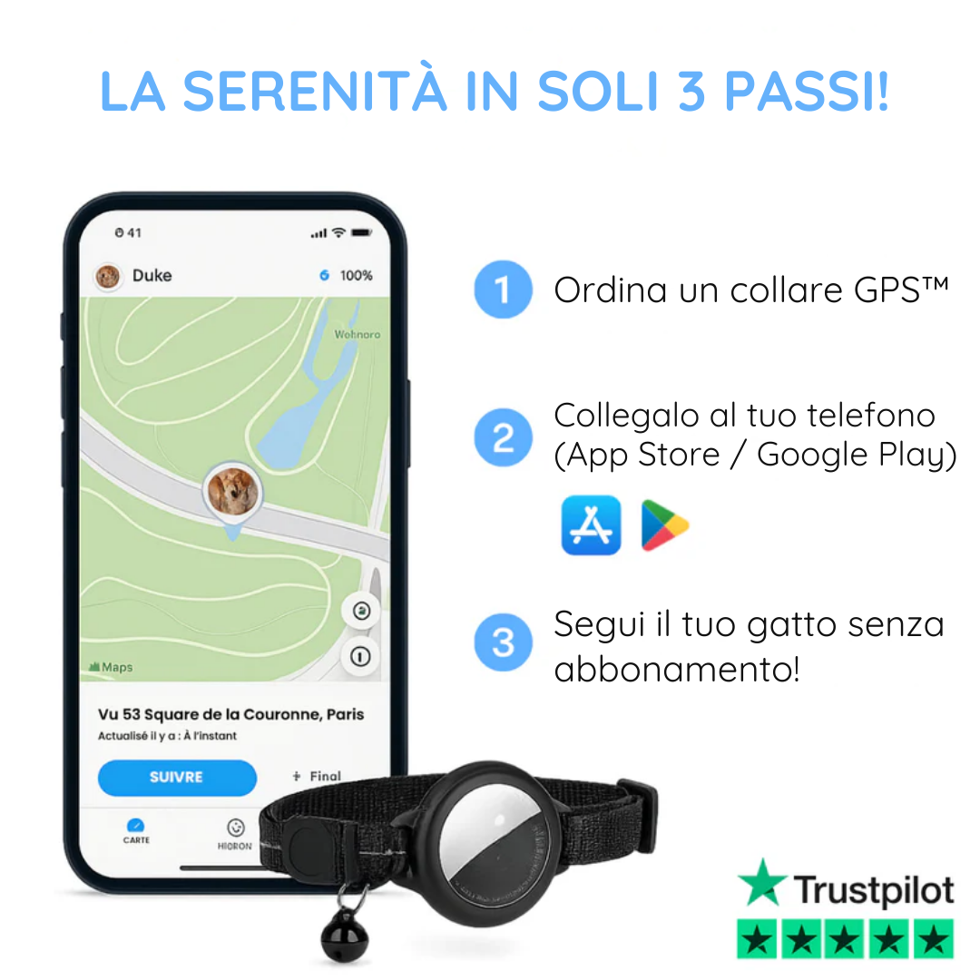 Il collare GPS pensato per i gatti: tracciamento preciso dal tuo smartphone, senza abbonamento e con chiusura anti-soffocamento per la massima sicurezza.