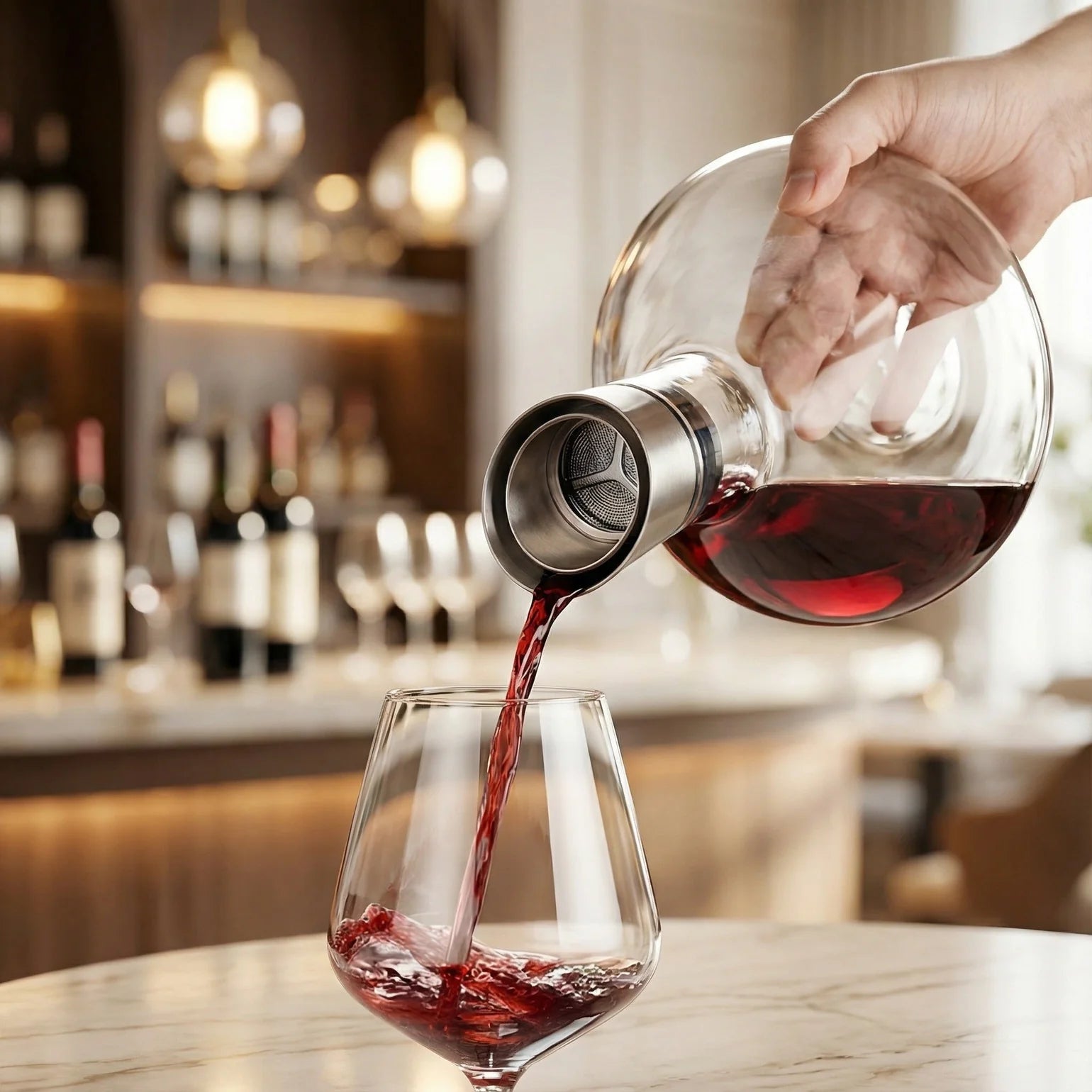 L’ho preso come regalo per mio padre, grande appassionato di vini, e ne è rimasto entusiasta. Il filtro è utilissimo e il vino risulta subito più equilibrato. Elegante, utile e di qualità.